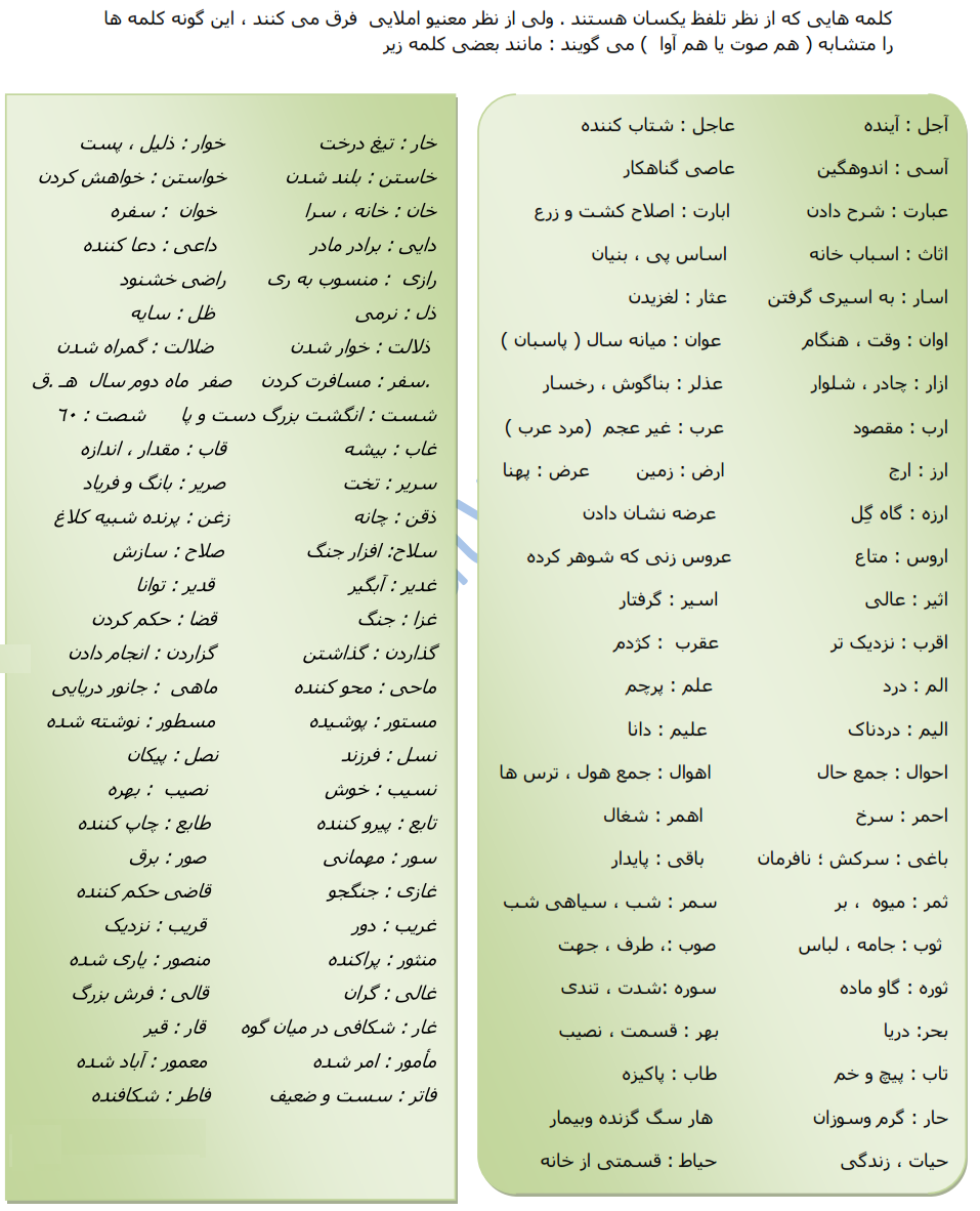 به عبارتی جناس تام یا کلمات هم آوایی که از لحاظ نوشتن نیز یکسان اند.مثال: