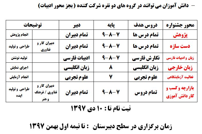 توجه : همانطور که اطلاع دارید نمره نگارش و نمره خوانش با هم جمع می گردد و در نهایت افراد برگزیده اعلام می شود.